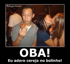 homossexual com um bolinho de cereja